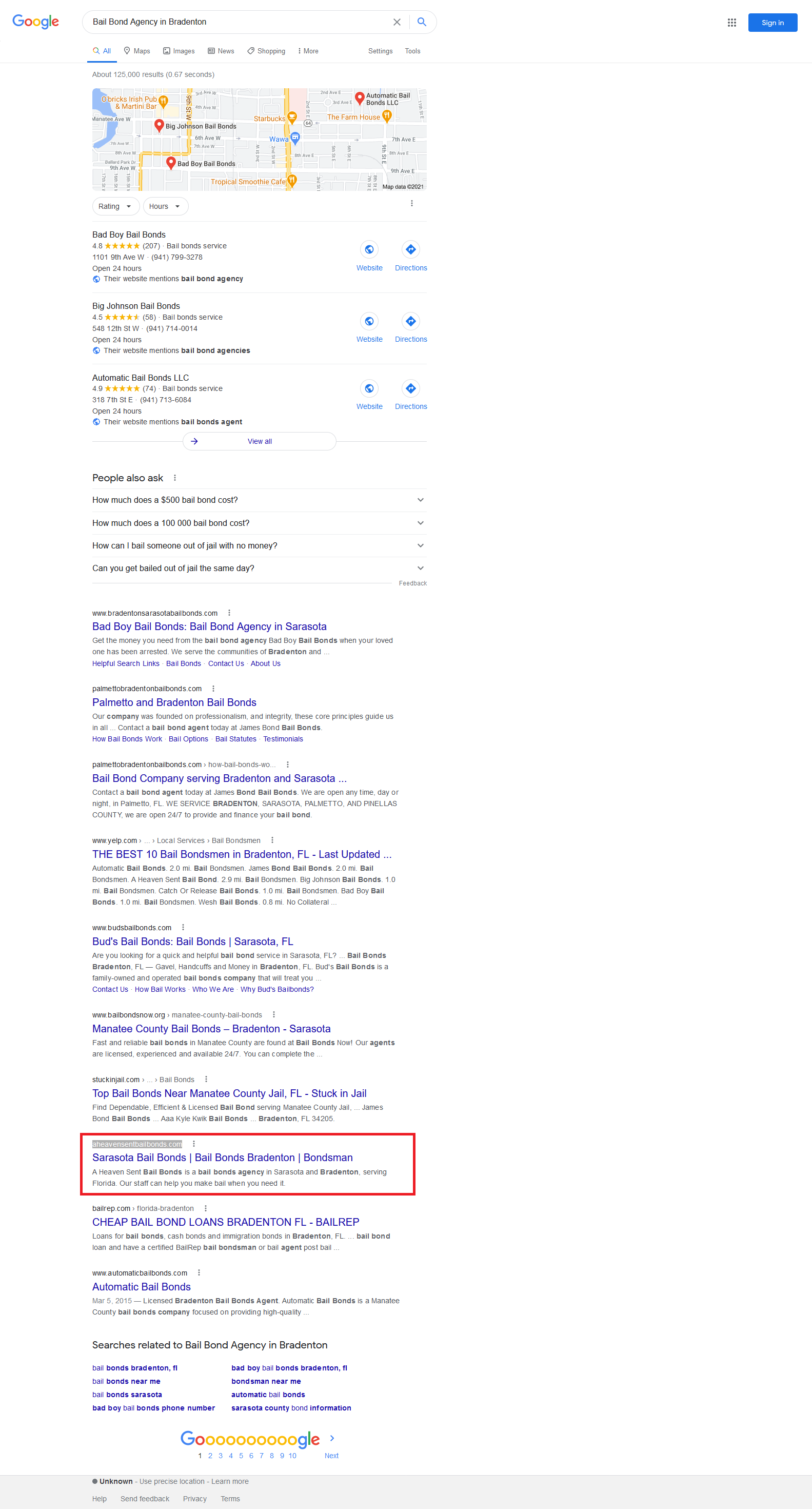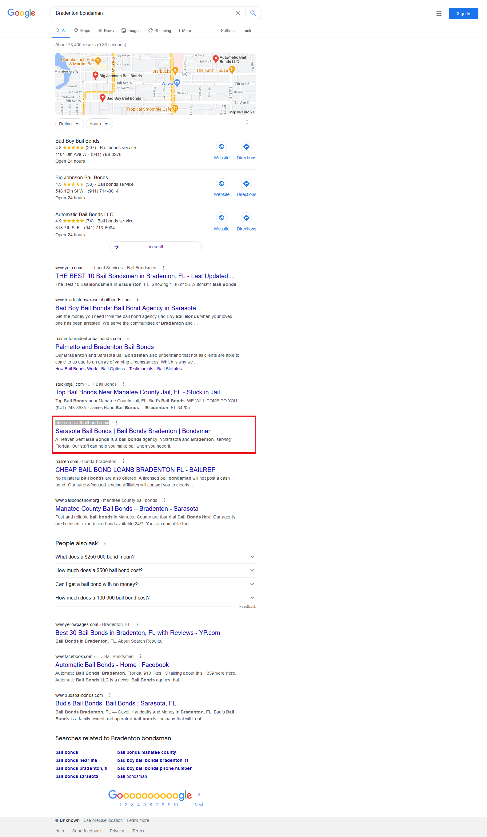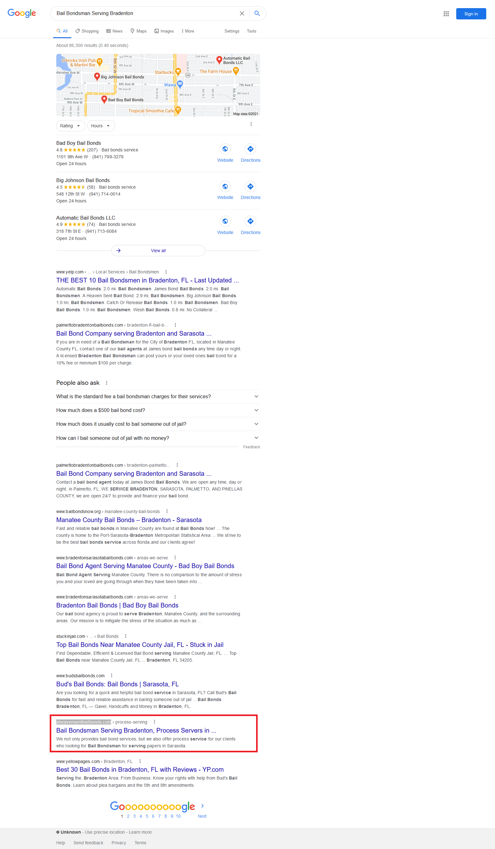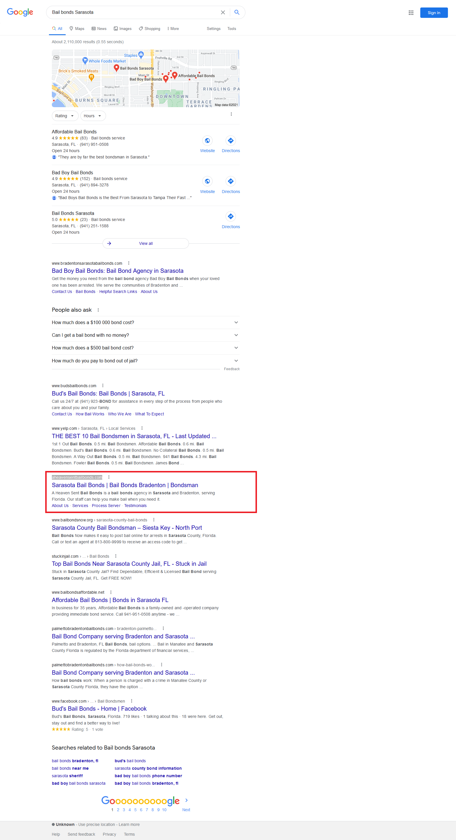 | Bail bonds Sarasota | 2 | NA |