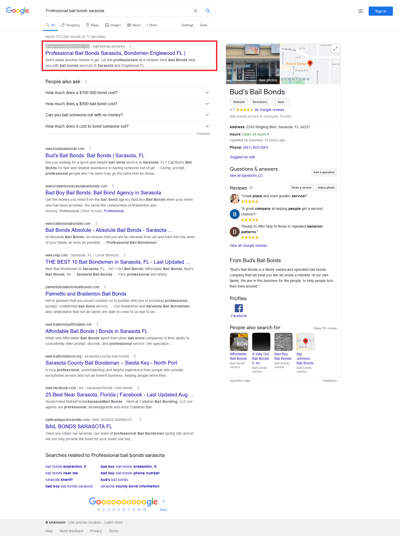 | Professional bail bonds sarasota | 1 | NA |